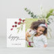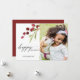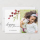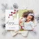 Esta tarjeta fotográfica muestra las bayas pintadas de color rojo y la rama de pino con las palabras "Felices Fiestas" Envíe vítores de vacaciones a su familia y amigos.