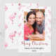 Feliz Navidad Pink y White Flamingo tarjeta de fotos tropical de Navidad. Esta tarjeta de foto de Navidades tropicales de Florida en julio es perfecta para una tarjeta tropical de Navidades familiares.