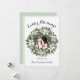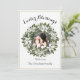 Una hermosa y elegante tarjeta de fotos floral de bendiciones de Pascua. Tema de diseño: Esta carta tiene un ambiente elegante, pero limpio y clásico. Una hermosa corona floral verde y blanca, guión de bonito y fuentes serif. Esta tarjeta será una manera destacada de enviar sus Bendiciones de Pascua este año.