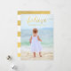 Relieve metalizado dorado Impreso Cree En La Tarjeta De Fotos De Vacaciones Contemporáneas. Elke Clarke © Disponible en www.zazzle.com/monogramgallery. Envíe sus saludos de vacaciones a sus amigos y familiares usando esta bella y simple tarjeta de fotos de vacaciones con la palabra "Believe" escrita en oro clásico tipografía de escritura a mano diseño de texto en formato vertical de tarjeta. Reemplace la foto de ejemplo con la suya propia. Efecto fotográfico impreso de Relieve metalizado dorado y fondo rayado blanco en la parte posterior de la tarjeta. Otros colores disponibles para el patrón alineado y el color de la palabra creen en nuestra tienda.