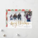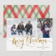 Guión dorado "Feliz Navidad" en falso purpurina con respaldo de patrón festivo tartán, tarjeta de 2 Navidades de fotos.