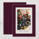 Un sutil y clásico patrón de patas traseras enmarca una sola foto vertical en esta elegante tarjeta de vacaciones. El sencillo tipo permite un espacio para un saludo personalizado ("Feliz Navidad" puede cambiarse a "Felices Fiestas" o cualquier cosa que quieras), nombre de familia y año. El fondo es un tono festivo de ciruela, pero se puede cambiar haciendo clic en "personalizar". La parte posterior presenta un patrón de patas de ciruela a juego.