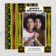 Esta hermosa foto de Kwanzaa que dice, "Feliz Kwanzaa" en una fuente decorativa y tu nombre familiar en mayúsculas y nombres en letras minúsculas en negro con una foto de tus hijos o familia en el centro rodeada de huellas africanas y una coordinadora red, verde, amarilla y negra africana con estampados es perfecta para mandar a todos que conoces y amas. Es moderno pero tradicional. Está fresco. Está limpio.