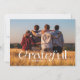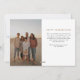 Captura la esencia de la gratitud con esta elegante tarjeta fotográfica de Acción de Gracias. La parte delantera muestra una fotografía de orientación paisajística de página completa, que ofrece un amplio espacio para que las familias puedan mostrar su momento favorito a partir del año. Sobre esta preciada imagen se encuentra la palabra "Agradecimiento" en un llamativo y moderno tipo de letra blanco, que encarna el espíritu de la temporada navideña. El lado inverso de la tarjeta continúa el toque personal con una segunda fotografía, lo que permite a las familias compartir otra memoria especial. Junto a esta imagen hay un espacio dedicado para un mensaje sincero, donde los remitentes pueden expresar su agradecimiento y sus cálidos deseos a sus seres queridos. Este diseño reflexivo logra un equilibrio perfecto entre el atractivo visual y la personalización. Diseñada tanto con estilo como con espíritu en mente, esta tarjeta de Acción de Gracias es una manera ideal para que personas y familias compartan su gratitud y se conecten con amigos y parientes cercanos y lejanos. El diseño simple pero impactante de la tarjeta asegura que el foco se mantenga en los recuerdos compartidos y en el mensaje personal, convirtiéndolo en un tesoro recuerdo mucho después de que la temporada de fiestas haya pasado.