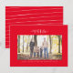Esta tarjeta horizontal de vacaciones de una foto muestra un prominente monograma rodeado de ramas rústicas festivas y el año y un lugar para un saludo de personalizable. La parte trasera tiene un fondo rojo a rayas. El color se puede cambiar haciendo clic en "personalizar". Pegatinas de direcciones de coordinación disponibles en la colección de Monogramas Rústicos de Lea Delaveris Design.