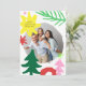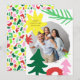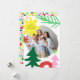 Un diseño moderno, audaz y colorido de una tarjeta fotográfica de vacaciones con formas abstractas temáticas de navidades inspiradas en coloridas impresiones de los años 90.