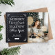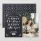 El moderno diseño de la tarjeta fotográfica de vacaciones de los Navidades incluye espacio para la fotografía de su familia y la divertida tipografía caprichosa que dice Deseándote una Feliz Navidad y un Feliz Año Nuevo en un falso fondo de textura de pizarra impresa. Personalice el diseño con el nombre de su familia y el año. Dulce coordinación del patrón de puntos polka en la parte trasera. Haga clic en el botón IT PERSONALIZAR para personalizares, mueva el texto y cree su propio diseño único de tarjeta fotográfica de vacaciones.
