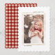 Tarjeta fotográfica de vacaciones para Navidades de marco dorado con patrón de plástico rojo invernal en la parte posterior.
