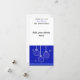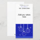 Un diseño de bonito azul real con adornos de vacaciones en blanco y azul. Pequeños copos de nieve en el fondo. Personalizar con tu foto e información.