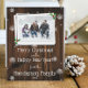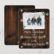 Difunde alegría de vacaciones a amigos y familia con esta célebre tarjeta de fotos de vacaciones rustica de madera. El diseño de la tarjeta fotográfica muestra un marco fotográfico blanco compuesto de fotografías apiladas adornadas con bayas rojas y copos de nieve que caen en blanco sobre un fondo rústico de madera. Colores adicionales disponibles con este diseño.
