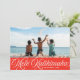 Esta tarjeta fotográfica de vacaciones de Hawái incluye un guión inspirado en retro blanco que dice "Mele Kalikimaka" sobre una foto horizontal. En la parte posterior hay un sencillo patrón de rayas diagonales rojas y blancas. Puede eliminar el patrón y agregar otra foto o texto adicional... Simplemente haga clic en "personalizar más adelante" en el menú desplegable.