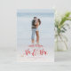 Una tarjeta de Navidad para los recién casados - envíen saludos de vacaciones a usted y a su nuevo cónyuge con esta tarjeta de una foto con un guión rojo juguetón "Sr. y Sra.".