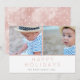 Moderna tarjeta de vacaciones de color rosa negro "Happy Holidays", 2 fotos, con una acuarela rosa a juego y un caprichoso patrón de nevada.