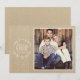 Esta encantadora carta rústica transmite la alegría eterna de la temporada y está diseñada exclusivamente para Zazzle. Perfecto para un saludo de vacaciones tradicional y de moda. Un fondo natural kraft con escritura angustiada dentro de una corona blanca rústica acentúa tu foto favorita. Borde fotográfico también en blanco. Añada un sello de vacaciones de Envelopments de nuestra extensa colección de correos para que coincida perfectamente con su saludo. Los sobres, revestimientos y recintos Pocketfold® están disponibles como complemento (a la derecha) a través de zazzle.com