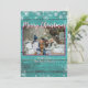 Adorables navidades rústicos de invierno saludando tarjeta de foto. Fondo rústico azul con copas de nieve blancas. Tarjeta de saludo fotográfico para navidades.