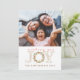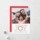 Celebra el mágico de los Navidades con esta tarjeta de vacaciones deseando alegría. Personalízalo con tu apellido, fecha y foto. El diseño presenta la palabra alegría con una corona acuarela. En el reverso se encuentra un lavado de acuarela rojo y minimalista que complementa las obras de arte frontales. Diseñado para ti por Blackberry Boulevard.