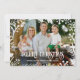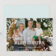 La foto llena del navidad blanco cubrió la tarjeta del día de fiesta - los helechos y las flores nevosos blancos hermosos rodean su foto con un mensaje de Felices Navidad.