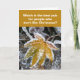 Tarjeta con foto de hoja helada y palabras "¿Cuál es el mejor pub para la gente a la que no le gustan los Navidades? Bar Humbug' de New Forest Pics
