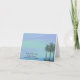 Ilustración gráfica de palmeras con vistas al océano azul y hermoso horizonte. Envía un deseo para un buen año a familiares y amigos.