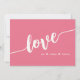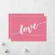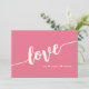 Elegante tarjeta de saludo de moda con un guión prominente que dice "LOVE" en un fondo de colores vivos. Un simple mensaje de afecto personalizable. Disponible en versiones de tarjetas plegadas y planas. Perfecto para El día de San Valentín, Día más dulce, aniversario boda o cualquier día!