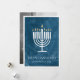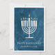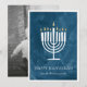¡Esta tarjeta feliz de Jánuca ofrece moderno y el ilustracion del menorah de la diversión se destaca contra un fondo texturizado en el azul que usted puede cambiarlo a CUALQUIER COLOR usando el "personalizar" botón! El soporte es personalizable total con una foto de su opción y de un texto de encargo cubierto O claro todos los artículos del soporte para que un lado en blanco trace sus propios mensajes manuscritos.