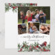 Tarjetas de navidad de moda de invierno que incluyen un collage de fotos familiares, un follaje elegante de navidades botánicos acuarelas, un robo, las palabras "feliz navidad" en un elegante guión de caligrafía, tu nombre familiar y el año. Fotografía © Storytree Studios, Stanford, CA