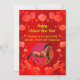 Celebre el Año del Caballo con nuestra tarjeta de vacaciones de Año Nuevo chino para caballos y faroles que muestra un hermoso stallion marrón impreso en un fondo rojo rodeado de muchas linternas chinas. Todos los textos son personalizables para un fácil cambio de saludos de vacaciones para tus amigos y familiares favoritos.