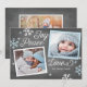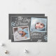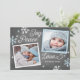 Esta moderna tarjeta de vacaciones de 2 fotos ofrece alegría, paz y amor con copos de nieve dibujados a mano en un falso fondo de pizarra. Añade una foto y un mensaje personalizado a la parte posterior para que sea el tuyo. Seleccione una forma cortada o papel texturado para un toque especial.