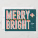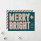 Esta tarjeta de Navidades festivos incluye la frase "Merry + Bright" en un marqués diseño tipográfico inspirado en la luz. La vibrante paleta de colores aporta un toque de alegría a esta tarjeta de vacaciones perfecta para familias con niños. En la parte posterior de la tarjeta se muestra una foto familiar amada con un marco de patrón de banda de coordinación, o se quita la foto y el cuadro para revelar un patrón de franja completa.
