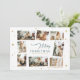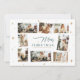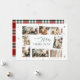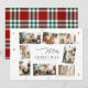 Feliz Navidad y Feliz Año Nuevo estrellas celestes ocho fotos familiares de Navidades de collage. Ideal para familias numerosas con muchas fotos para compartir. Deja que tus fotos brillen con esta tarjeta de collage enmarcada en estrellas modernas. El diseño de la parte trasera presenta un diseño clásico de yeso verde y rojo.