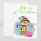 Feliz tarjeta navideña de Ilustracion para gatos. El gnomo de gato retro lindo vestido con gorra y bufanda sentado en los regalos es un ilustracion creativo. Envíe esta hermosa y única tarjeta de saludo en las vacaciones del Navidad a su familia y amigos