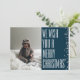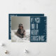 Gris "Te deseamos una Feliz Navidad en un fondo azul profundo con un borde blanco nevado. Añade tu foto para hacerlo personal. En la parte posterior se lee "Y un feliz año nuevo" e incluye su firma totalmente editable con el nombre de su familia, nombres de individuos y el año. Esta carta tiene un ambiente muy elegante y moderno.
