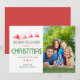 Este diseño cuenta con un Santa Claus con reno y trineos. El texto "Le deseamos una feliz Navidad y un feliz Año Nuevo" está escrito en una moderna y popular tipografía roja y verde con la opción de añadir su apellido y una fotografía familiar. Perfecto para Navidades de invierno o verano. #navidades #foto #tarjeta #personalizada #vacaciones #empresa #negocio