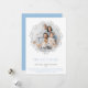 Esta tarjeta de Navidades clásica con una simple corona alrededor de tu foto es perfecta para celebrar las vacaciones. Envíe algo de alegría a sus amigos y familiares con sus fotos y deseos personales. Puedes cambiar las palabras "Feliz Navidad" y el versículo de la Biblia - porque para nosotros un niño nace, para nosotros se da un hijo; y el gobierno estará sobre su hombro, y su nombre será llamado Maravilloso Consejero, Dios Todopoderoso, Padre Everaz, Príncipe de la Paz. - Isaías 9:6 en la parte inferior para copiar su elección. El reverso tiene un fondo azul sólido.