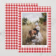 Celebra la alegría de la temporada con nuestra tarjeta navideña de festividad roja Festín navideño! Con un clásico patrón de manto rojo que exuda calidez y alegría navideña, esta tarjeta es la manera perfecta de enviar saludos festivos a sus seres queridos. El diseño encuadra maravillosamente tu foto familiar favorita, convirtiéndola en un placer personal y memorable.
