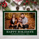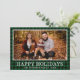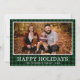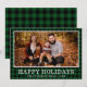 Esta increíble tarjeta de Navidades fotográficos tiene tu foto favorita, manta de búfalo verde y negro, tu nombre de familia, el año, y las palabras "Felices Fiestas" en el frente en blanco y un búfalo verde a juego en la espalda. El tipo de letra es nítido y limpio, lo que hace que la tarjeta parezca moderna pero tradicional.