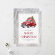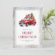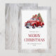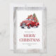 acuarela rústica Tarjeta navideña con un viejo camión rojo que lleva un árbol de Navidad y regalos dentro de un marco rústico de madera. Personalice fácilmente esta tarjeta de Navidades de camiones rojos con su nombre familiar y el año.