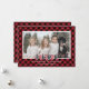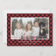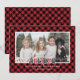 El búfalo rojo personalizado tiró tarjetas de fotos navideñas con mantas de búfalo rojas y negras, caída de nieve y luces de árboles de Navidad. Personaliza fácilmente estas tarjetas de Navidades de fotos rojas de búfalos rojos con tu imagen y un nombre de familia.