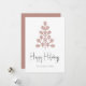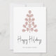 Tarjeta de vacaciones moderna corporativa/profesional con un árbol y "Happy Holidays" escrito en un guión de moda. Agregue el nombre de su empresa en la parte inferior y el mensaje personalizado en la parte posterior. Diseñado por ©StripedHatStudio