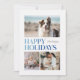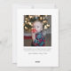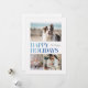 Esta tarjeta de vacaciones de 3 fotos dice Felices Fiestas y presenta un tipo sombrío simple en tonos azules sobre un fondo blanco. Tiene una foto grande, y dos fotos más pequeñas están en la parte delantera, con una foto adicional en la parte trasera con espacio para un saludo personal.