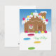 Las casas de jengibre que son dulces y están completamente decoradas en color con dulces y hielo visualmente atraerán en una tarjeta.