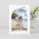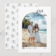 Tarjeta navideña con escritura minimalista Mele Kalikimaka. La sencillez de una tarjeta blanca brillante con la elegancia de un guión de estilo manuscrito bonito. Las palabras "Mele Kalikimaka" son parte de los elementos de diseño y se pueden colorear, cambiar de posición y cambiar el tamaño. Personalice la plantilla con sus propios detalles de texto. Tu foto será enmascarada en la forma del arco al subir. Utilice la Herramienta de edición para ajustar el posicionamiento de la foto dentro de la forma de arco. BACK: Un sencillo patrón de doodle de hibiscus en blanco y negro. Tiene la opción de eliminar el patrón. © Kimbellished, LLC