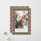 Desee a los amigos de familia Felices Fiestas con una tarjeta personalizada de Navidades de fotografía rojos y verdes de yegua para Navidades DIY que muestra a su familia en el frente sobre un patrón de manto de Navidades rojos y verdes de color agua, y un costado con 3 fotos familiares y una nota editable y un lindo oso oso de peluche Navidades. Estas editables tarjetas fotográficas de Navidades de doble lado son la manera perfecta de compartir las alegrías de las vacaciones y los deseos de una feliz temporada navideña. La colección BERNARD incluye una foto de su familia con un mensaje Happy Holidays on front and the year en un clásico estilo serif in green. Se incluye un reverso opcional con tres fotos familiares y una nota, con un patrón de manto rojo y verde. En la parte trasera de la tarjeta de vacaciones roja y verde de yeso se incluye un oso de peluche Navidad.