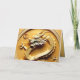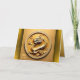 Dragón amarillo al estilo origami en un fondo "dorado" (modelo n° 3) con "Año del Dragón", 2024, saludando en fronteras chinas e inglesas + doradas. Diseño de tarjeta de felicitación horizontal con papel de textura dorado (imagen impresa) dentro. Perfecto para el Año Dragón de la madera china 2024.