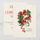 Personalizable Tarjeta navideña vintage que incluye un hueso decorado con bayas y azulejos y una cinta roja.