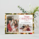 Comparte tu alegría navideña con esta tarjeta personalizada de fotos navideñas de la familia. Este diseño presenta un audaz saludo de Feliz Navidad en un elegante guión rojo, combinado con un moderno diseño de collage de dos fotos, perfecto para mostrar tus recuerdos familiares favoritos. Una tarjeta de vacaciones festiva e intemporal, ideal para enviar cálidos deseos a amigos y seres queridos. Fácilmente personalizar con sus propias fotos y nombre de familia para crear un conservador único. Esta tarjeta de vacaciones personalizado es perfecta para saludos de Navidad, compartir fotos familiares y correo de vacaciones. ¡Una bonita manera de hacer que tu temporada sea brillante!