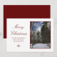 Feliz Navidad en la escena navideña tarjeta de saludo de vacaciones, con una escena de bosques de invierno después de la nieve recién caída. Si se establece en un fondo blanco, se puede personalizar con letras de guiones rojos. También puede añadir su propia foto si lo desea. Una tarjeta encantadora para enviar deseos de vacaciones a tus amigos y familia.