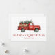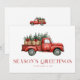 Una tarjeta de vacaciones mínima y elegante, perfecta para enviar saludos festivos a la familia y amigos. Con un camión rojo retro de acuarela con árboles de navidad, personalizado con el nombre y el año de su familia. Agregue su propio mensaje al dorso de la tarjeta para crear una pieza que sus destinatarios apreciarán.