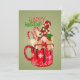 Festiva Tarjeta Navideña Plana con Gnomo Lindo
