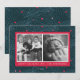 Diga "Felices Fiestas" con esta tarjeta navideña de 2 fotos que presenta una hermosa ilustración original de una rama de abeto y bayas en azules, verdes, rojos y rosados. Las fotos, el nombre, el saludo y el año son personalizables. Parte de una colección de Parcel Studios.